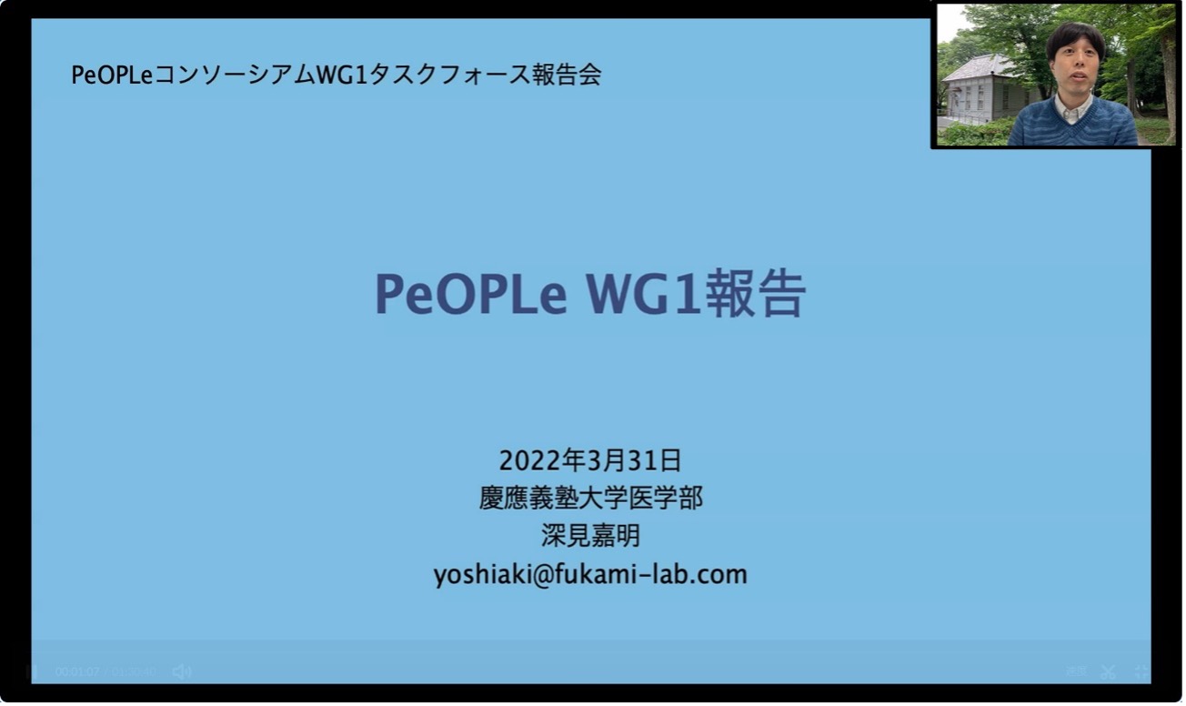 慶應義塾大学PeOPLe共創・活用コンソーシアムWG1では、「PHR標準化ガイドライン案(提言案)」の策定を進めており、2021年度は会員企業様へのインタビュー及び関連する文献調査等を実施し、取りまとめたものを報告した。